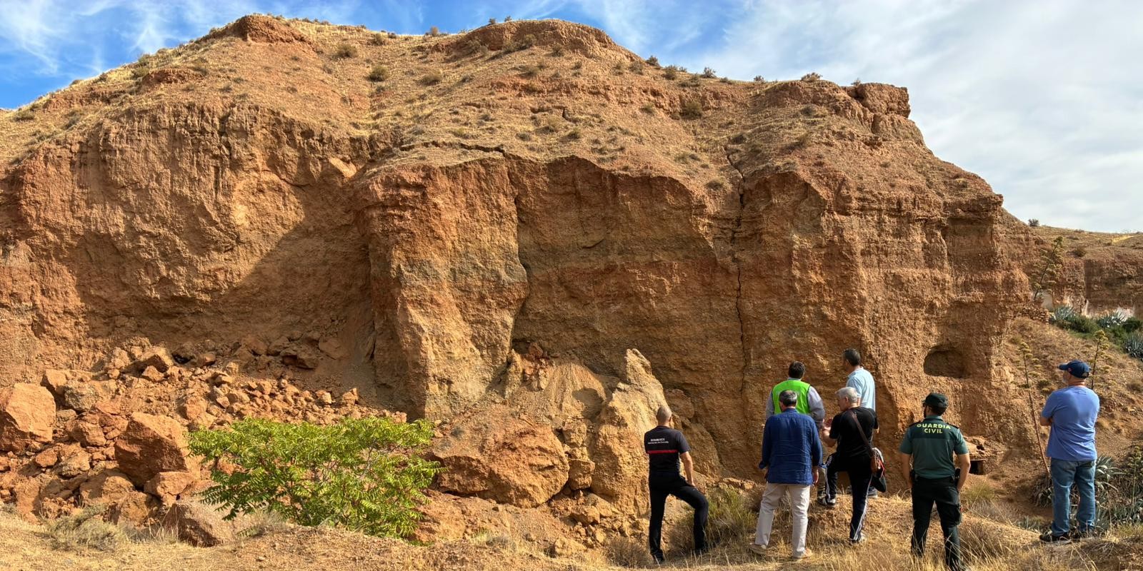 También participó el jefe de Bomberos del Parque Provincial de Guadix, quienes pudieron comprobar de primera mano los daños ocasionados por el desprendimiento de rocas.