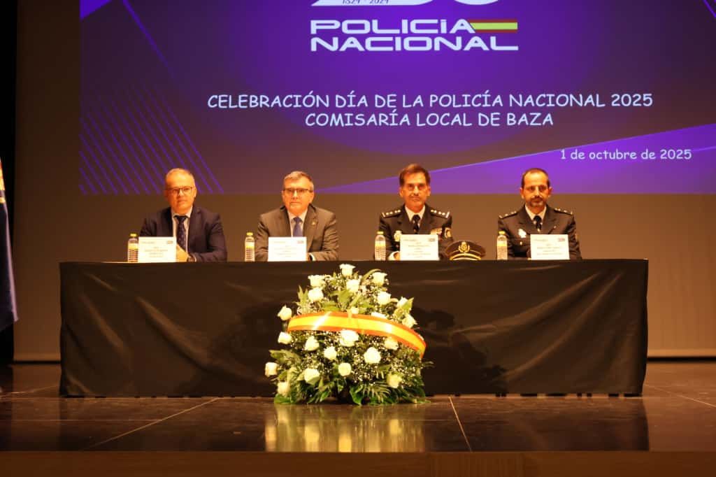 Baza: El subdelegado del Gobierno en Granada, José Antonio Montilla Martos, ha presidido hoy en el Teatro Dengra de Baza el acto conmemorativo del Día de la Policía, donde ha puesto en valor el trabajo que desarrolla la Policía Nacional en la comarca de Baza, “una labor que garantiza la seguridad ciudadana, la protección de los derechos y libertades y que convierte a esta ciudad en un lugar seguro y tranquilo”.