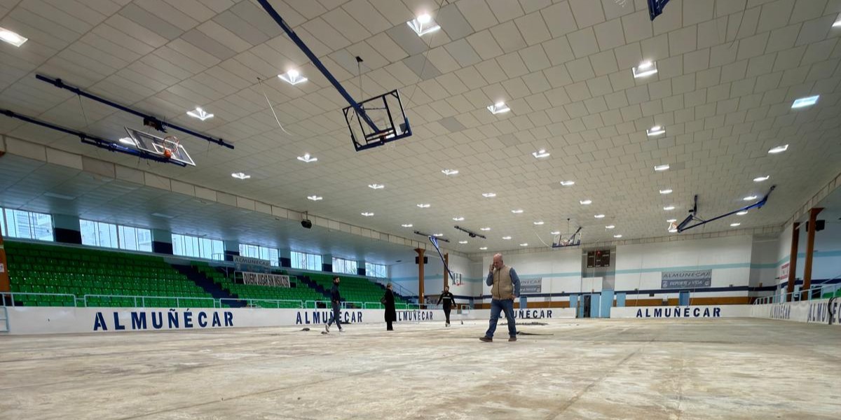 Almuñécar invierte más de 134.000 € en la renovación integral del Pabellón Antonio Marina, ya en la fase final del nuevo pavimento deportivo