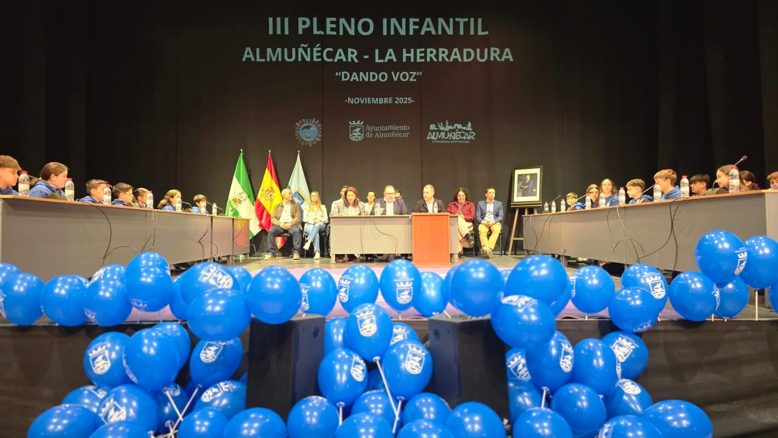 El alcalde de Almuñécar, Juan José Ruiz Joya, ha inaugurado el III Pleno de la Infancia, un acto celebrado en la Casa de la Cultura y que ha reunido a escolares de 5º y 6º de Primaria de los centros educativos de Almuñécar y La Herradura, así como a representantes de la ESO y Bachillerato de algunos de los IES del municipio. La actividad se ha celebrado en torno al Día Universal de los Derechos de la Infancia, que se conmemora cada 20 de noviembre, como parte del compromiso municipal con la promoción de la participación infantil.