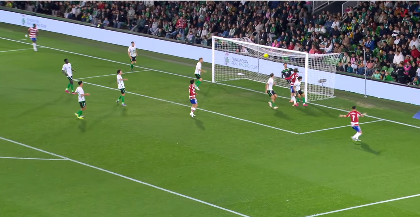 La reacción nazarí llegó cuando Pascual apareció en el área pequeña para conectar un testarazo a centro medido de Faye. La acción fue revisada por fuera de juego, pero finalmente se dio por válida y redujo la distancia. Poco después, Alemañ rozó el empate con un disparo desde la frontal que salió ligeramente desviado.
