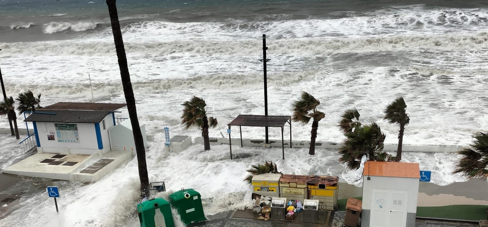 El fuerte oleaje y el viento de poniente han provocado numerosos desperfectos en los litorales y en el mobiliario urbano de las playas de La Rábita y, especialmente, de El Pozuelo, una zona que ya venía sufriendo daños desde hace varios días a consecuencia del tren de borrascas que está afectando a la comarca.
