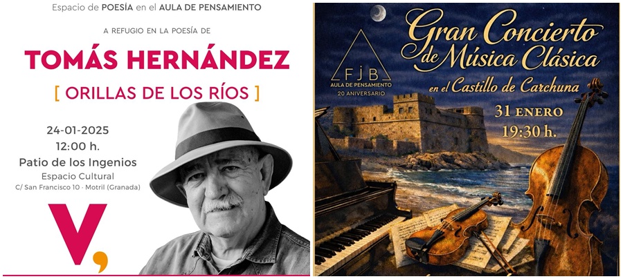 El Aula de Pensamiento Francisco Javier de Burgos de Motril continúa celebrando su compromiso con la cultura y el pensamiento a través de una programación diversa que, en el marco de su 20º aniversario, reúne poesía y música en espacios singulares del municipio.